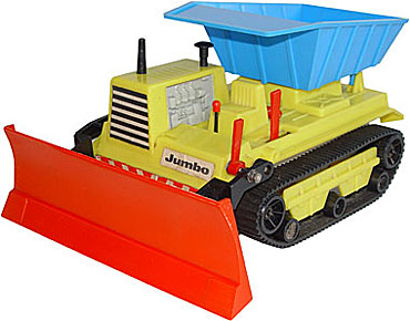 Maßstab ca. 1:25, mehrteilige Karosserie, elektrischer Kettenantrieb, Ladefläche kippbar, Lenkung über Einstellhebel, vor- und rückwärts