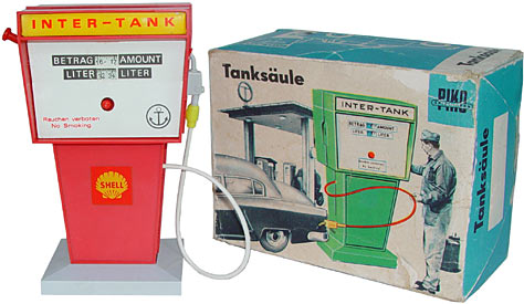 Aufziehen mittels eines Hebels an der Seite, optische und akustische Beitragsanzeige, Auslöser am Zapfhahn, Zurückstellung auf 0 möglich, Exportausführung mit SHELL-Logo, alte OVP