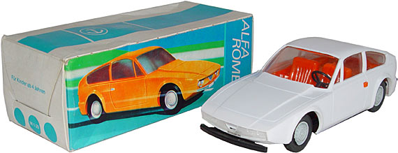 Maßstab 1:20, Kunststoffkarosserie mit Verglasung, Anbauteile separat ausgeführt, Inneneinrich-tung, Schwungradantrieb, Vorderachse in 3 Richtungen lenkbar, seltene weisse Ausführung