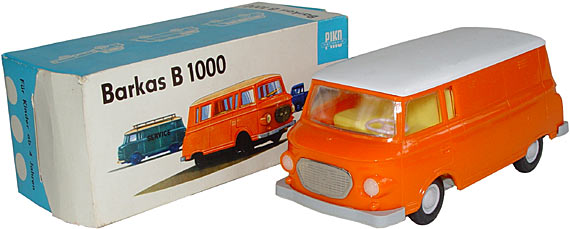 Maßstab 1:25, Kunststoffkarosserie mit Verglasung, Kühlergrill aus Blech, Scheinwerfer eingesetzt, Stoßstangenecken Teil der Bodenplatte, Vorderachse in 3 Richtungen lenkbar, Dach aufgesteckt, Schwungradantrieb, seltene Piko-Verpackung