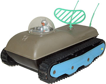 aus Bakelit, mit Glaskanzel, Kettenantrieb, Lenkung über Fernsteuerung
