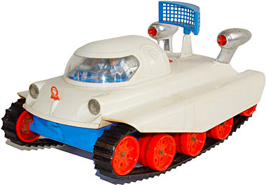 mit Verglasung, Kettenantrieb, Lenkung über Fernsteuerung, beleuchtete Scheinwerfer und Kanzel, drehendes Radar, Batterie im Fahrzeug, ver- chromte Düsen, Rarität - die »Kosmonauten-Fahrerlaubnis«