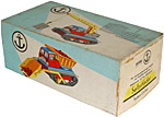 mit Verglasung, Kettenantrieb, Lenkung über Fernsteue- rung, Überkopflader mit dreh- und kippbarer Mulde, OVP und seltene Ziegelsteine und Briketts, sowie nummerierte Abziehbilder